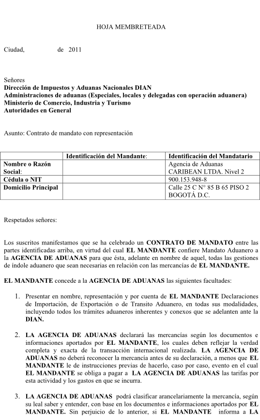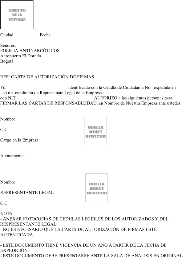 MODELO DE CARTA DE AUTORIZACIÓN DE FIRMAS, PARA LAS CARTAS DE RESPONSABILIDAD, FRENTE A LA POLICÍA ANTINARCÓTICOS